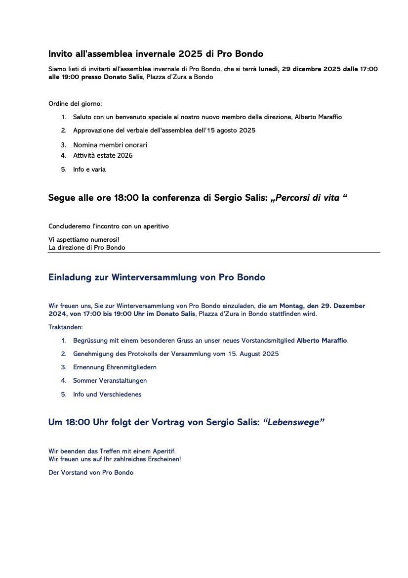 Einladung zur Winterversammlung 2025